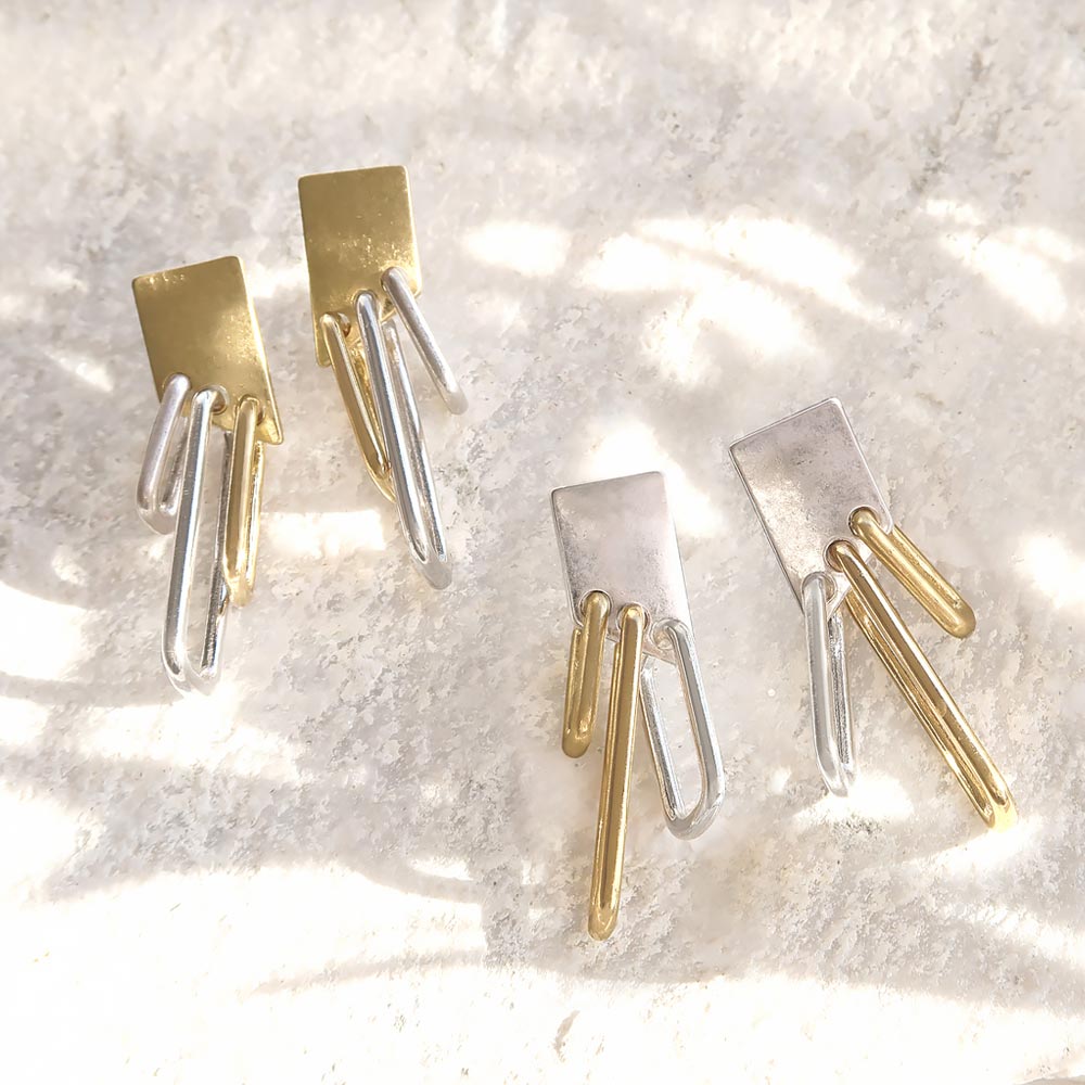 【送料無料】ピアス ニッケルフリー スクエア オーバル コンビネーション メタル ポストピアス | アクセサリー レディース 女性 大人 プレゼント ギフト 結婚式 誕生日 おしゃれ オシャレ かわいい 可愛い シンプル 20代 30代 40代 50代