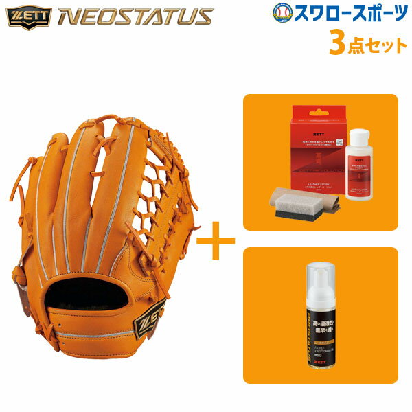 ゼット ZETT 硬式グローブ グラブ ネオステイタス 外野用 外野手用 汚れ落とし+保革油セット BPGB12817 野球部 硬式野球 部活 高校野球 野球用品 スワロースポーツ